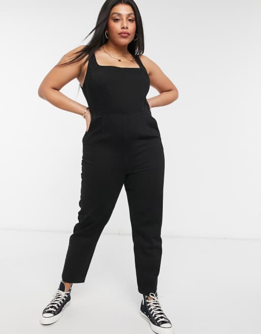 ASOS DESIGN Curve denim square neck fitted jumpsuit in washed black 4860 54.